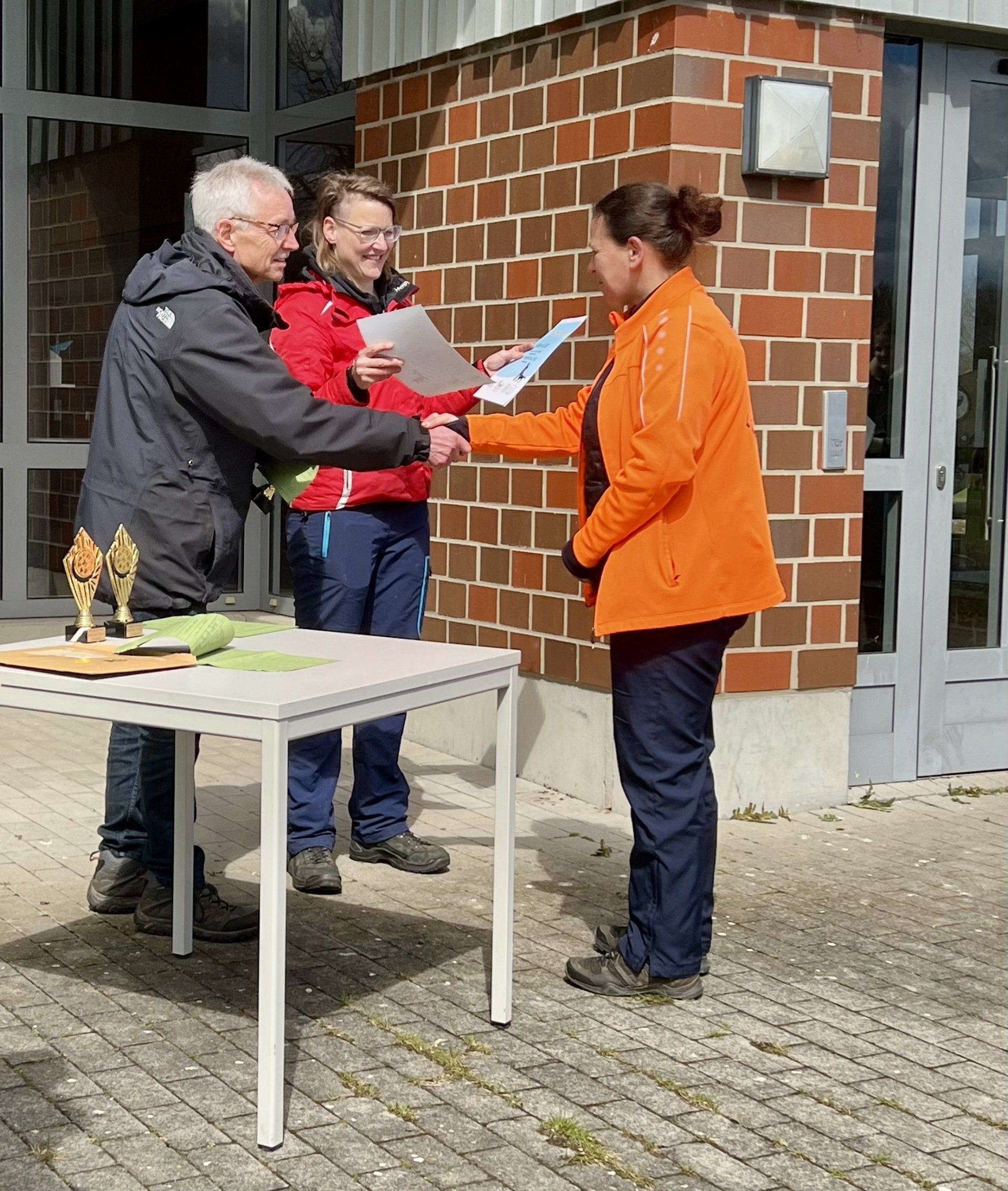 Unter der souveränen und entspannten Leitung der Richterin Kirsten Brox und Richteranwärterin Pia Reiterer zeigten sich alle von ihrer besten Seite und bestanden mit zum Teil vorzüglichen Bewertungen. Trainerin Jasmin Jähne zeigte sich besonders froh darüber, dass alle im Laufe der einjährigen Ausbildung zu echten Teams mit sehr guter Bindung zwischen Mensch und Tier zusammen gewachsen sind.